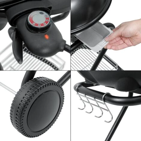 Le gril électrique en métal moulé de haute qualité possède un grand serpentin de chauffage et une puissance de 1 700 à 2 000 watts. Vous pouvez régler la température de manière variable grâce à 5 niveaux de température. La température souhaitée est maintenue par un thermostat intégré.