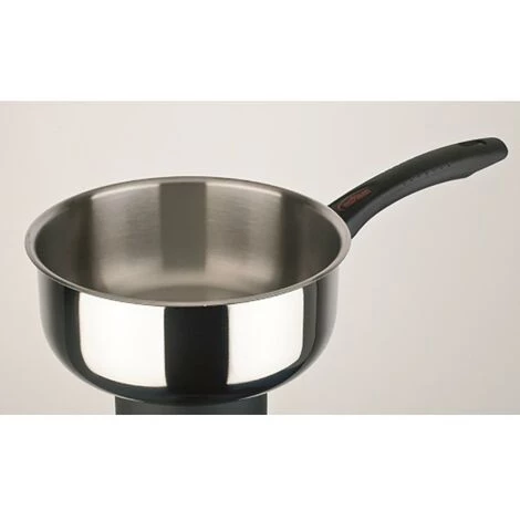Casserole en acier inoxydable de haute qualit� avec poign�e en bak�lite thermo-isolante, convenant � tous les types de feux, y compris l’induction.