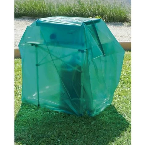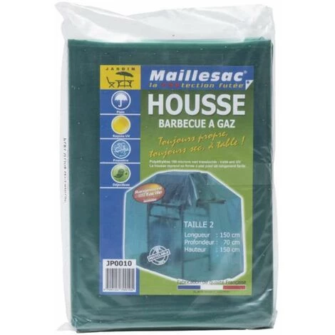 Housse luxe barbecue ou plancha 150 cm Film polyéthylène 100 microns. Coloris vert translucide. Dimensions: L. 170 x P. 70 x H.150 cm.