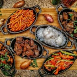 BBQ-Toro Set De Poêles à Servir Avec Socle En Bois | 27 X 18 X 3 Cm – Ovale
