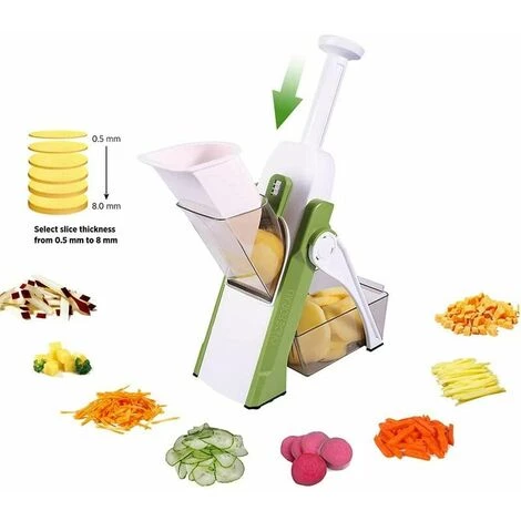 Polyvalent – Il existe plus de 30 options de tranchage pour un tranchage parfait de 1 à 9 mm d’épaisseur, tout en offrant des options polyvalentes pour le tranchage, la julienne, les cubes, les frites, les oignons, les carottes, les pommes de terre, les tomates, les fruits