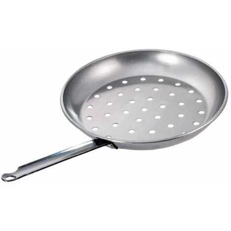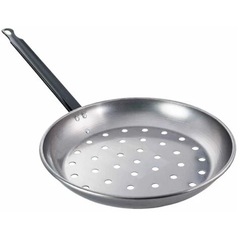 La poêle à marrons à trous dans le fond est un ustensile traditionnel, toujours réalisé en tôle d’acier pour sa robustesse. À utiliser principalement sur braise. Diamètre 28cm.