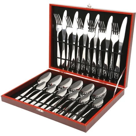 YONGQING Vaisselle Couverts 24 Pièces Couverts En Acier Inoxydable Pour 6 Personnes – Argent